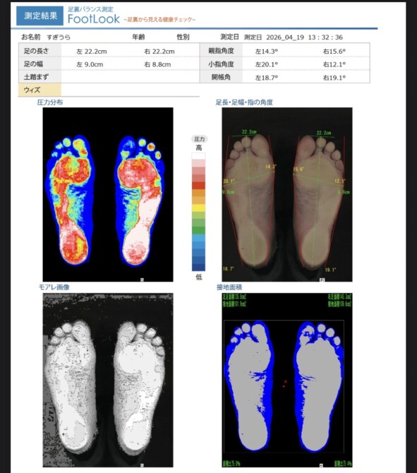 ちなみに先生の測定結果はまさにこんな感じの形→👣で、全体赤色でした!